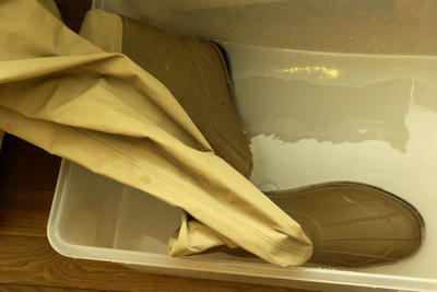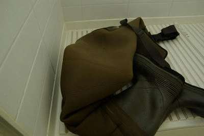 下半身部隊のウエーダーは軽く水洗いしてから浸けます