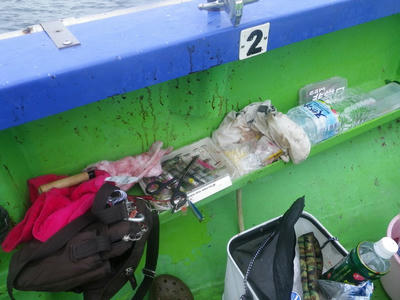 普段シーバスやる道具にプラスして新たに買ったのはジグとフックと酔い止めかな?