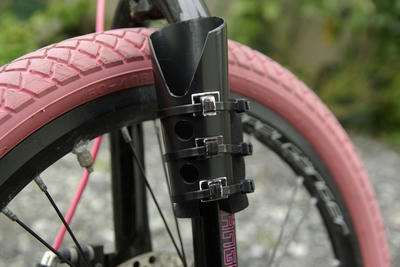 まずは傘ホルダーをフロントフォークに仮止め